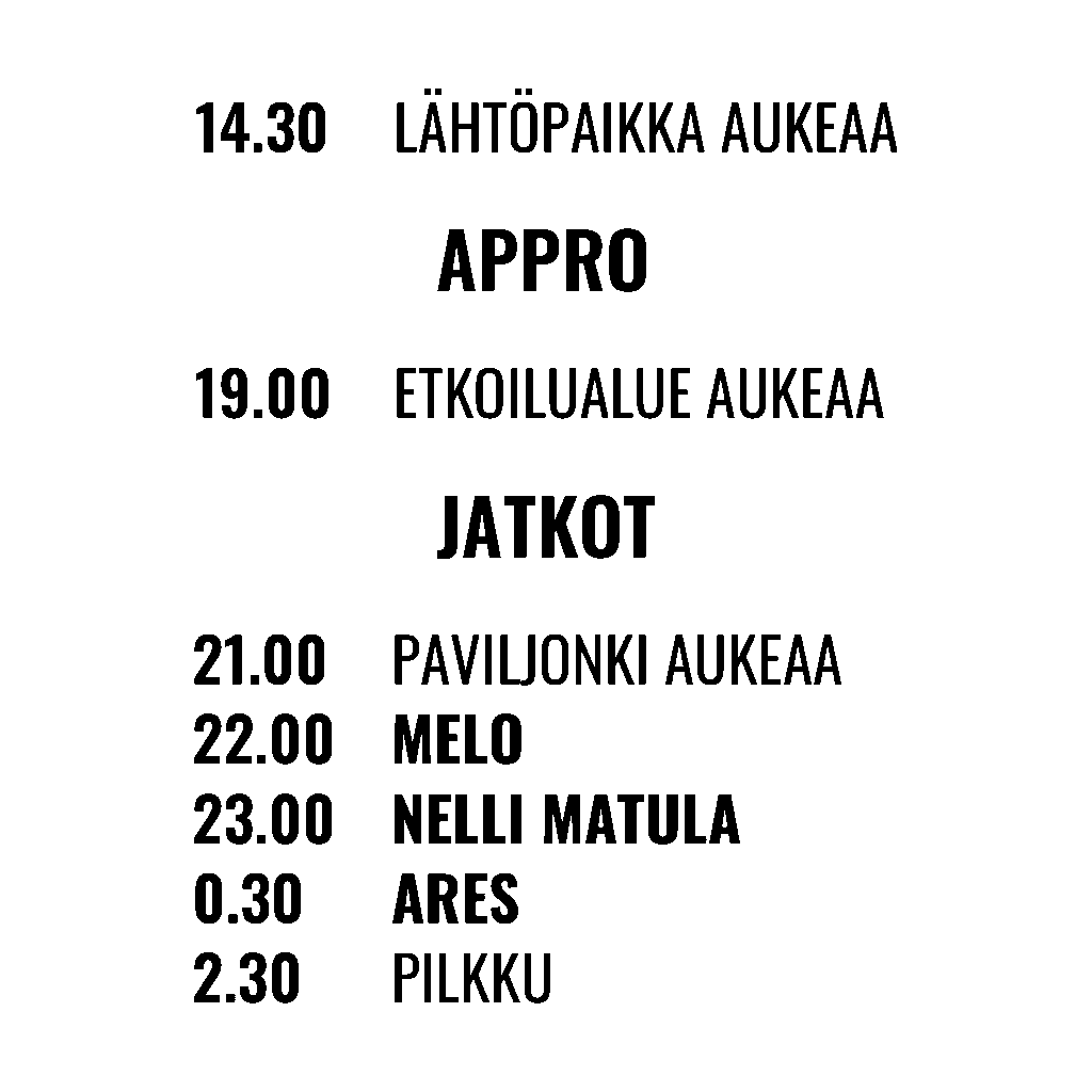 Lähtöpaikalle kannattaa saapua hyvissä ajoin, sillä alueella on runsaasti hauskaa ohjelmaa sekä Appron järjestäjiltä että yhteistyökumppaneilta. Kaikki aktiviteetit ovat maksuttomia ja avoimia kävijöille!